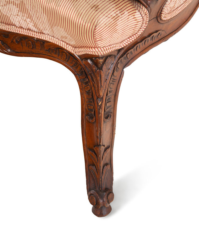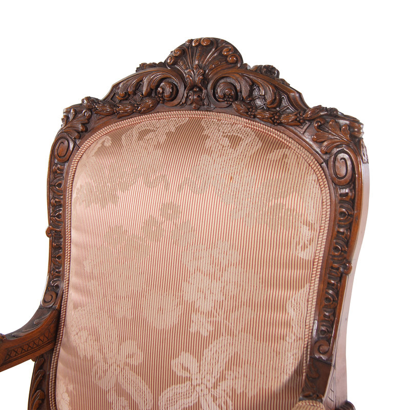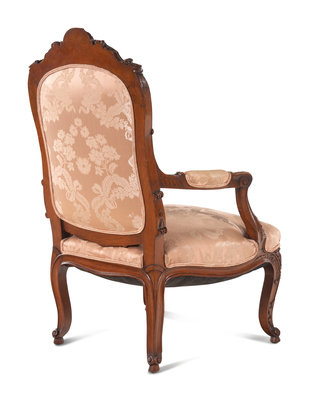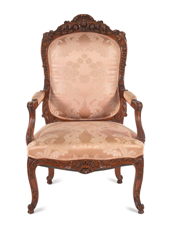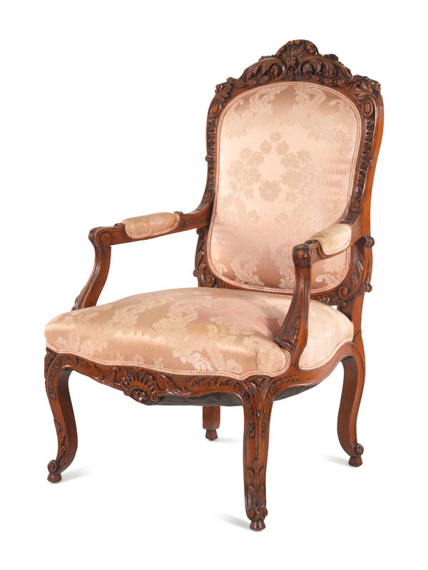A Louis XV Style Carved Walnut Fauteuil