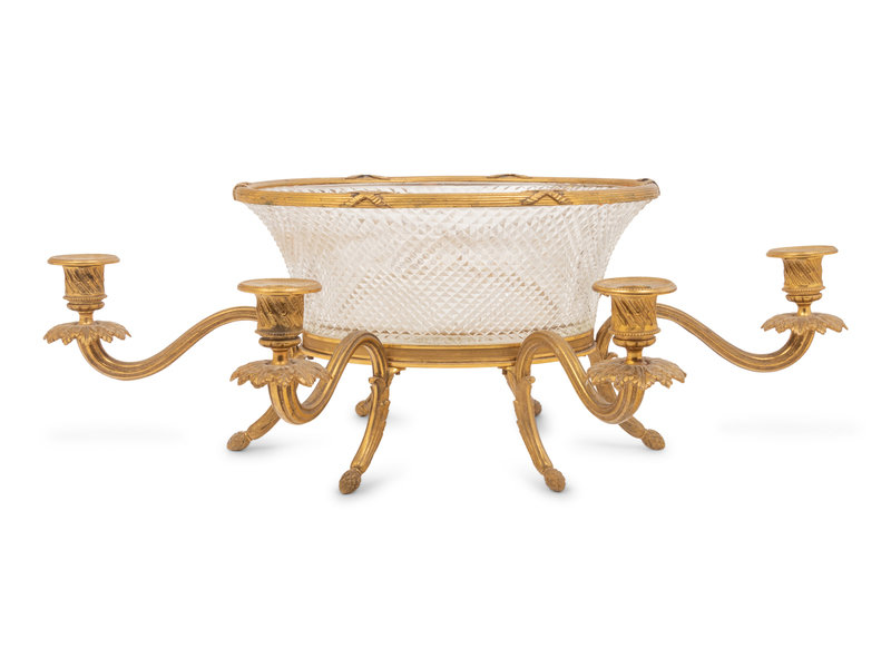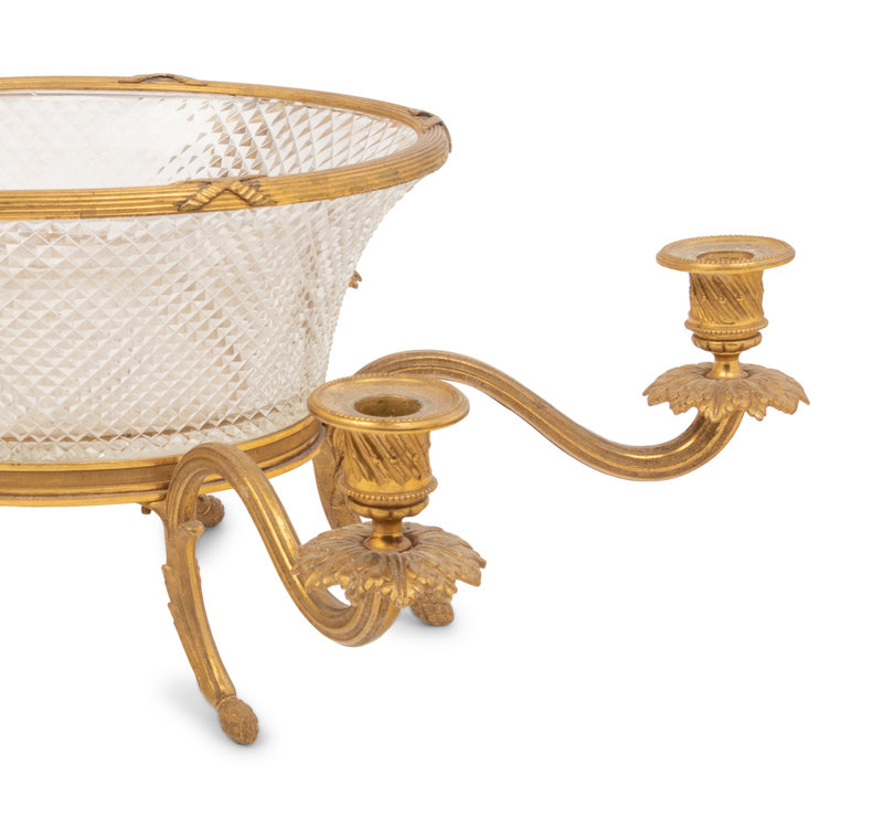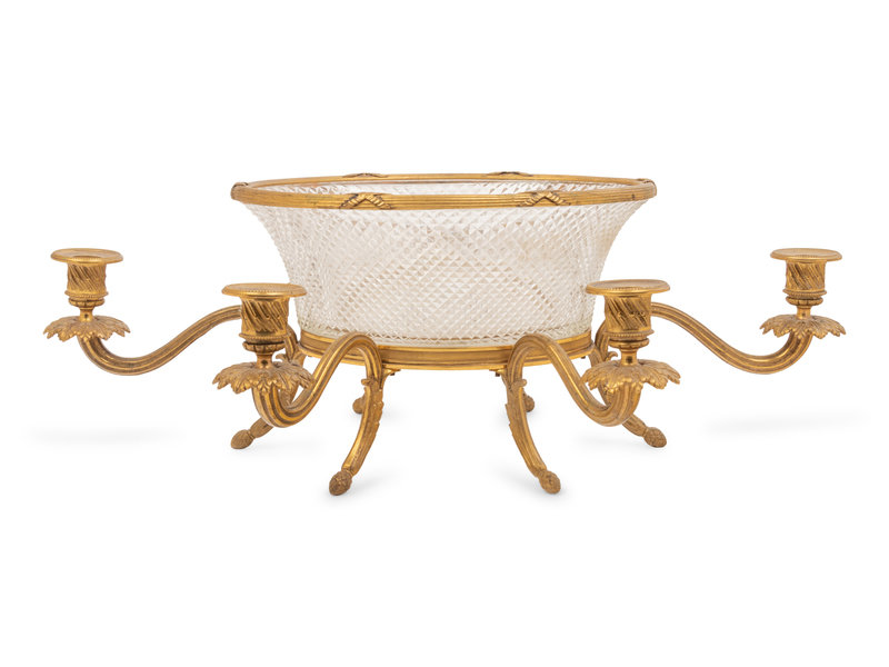 A Louis XVI Style Gilt Bronze and Cut Glass Six-Light Centerpiece Bowl