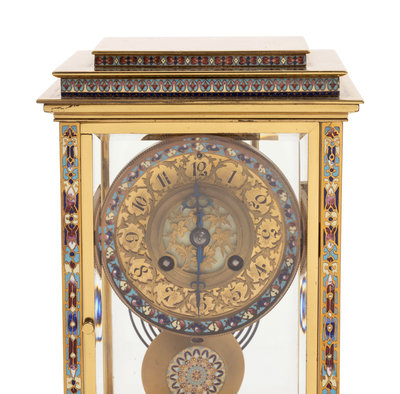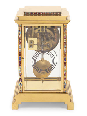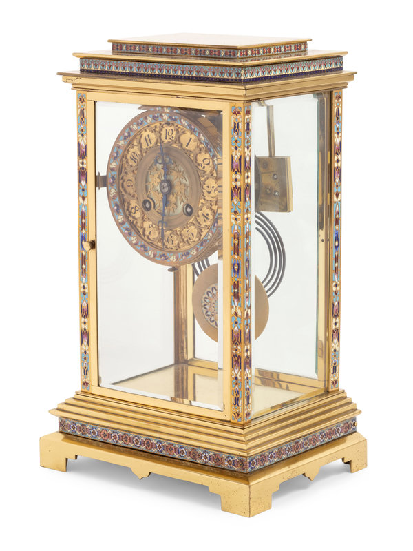 A French Gilt Brass and Champlevé Mantel Clock Retailed by Tiffany & Co.