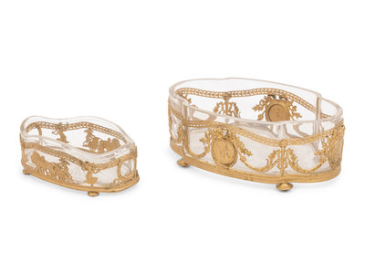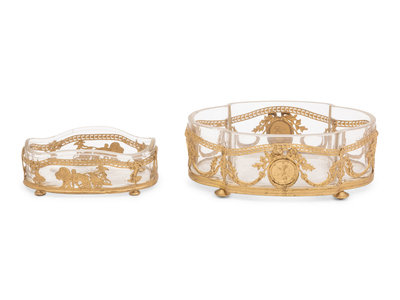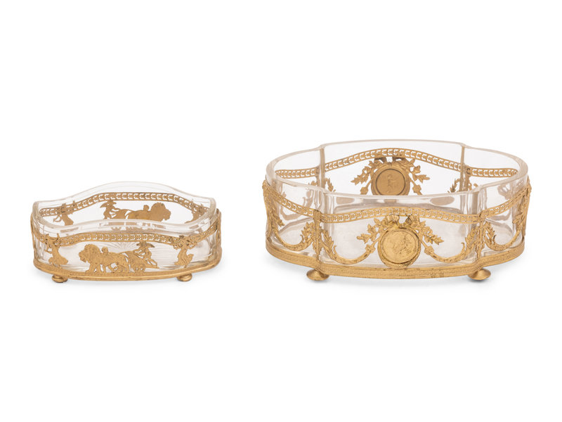 Two French Gilt Metal and Glass Bowls