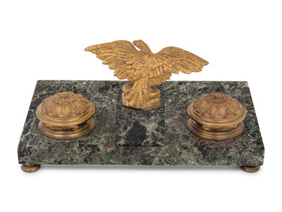 Height of inkstand 5 1/2 x width 11 3/4 inches.