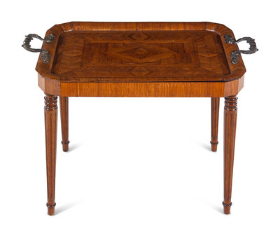 A French Gilt Metal Mounted Parquetry Tray-Top Low Table