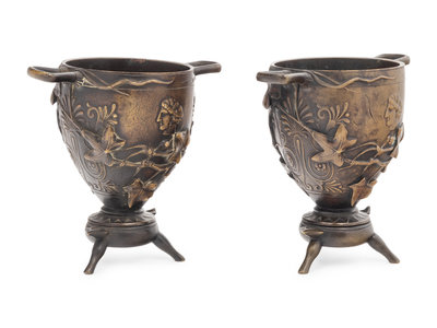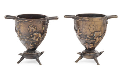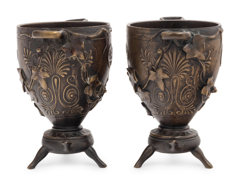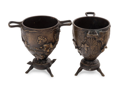 Two Grand Tour Bronze Cups by Auguste-Nicolas Cain (French, 1821-1894)