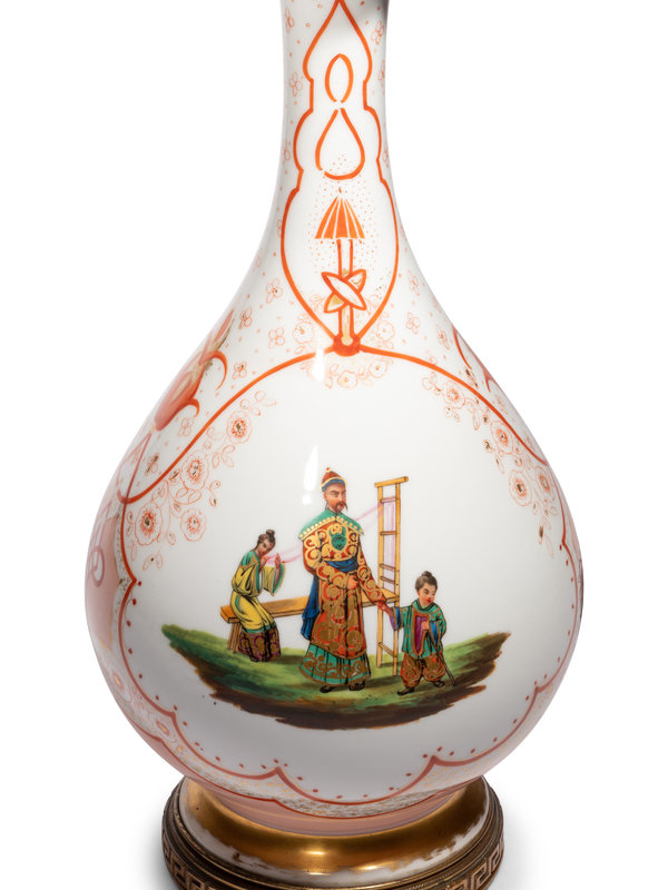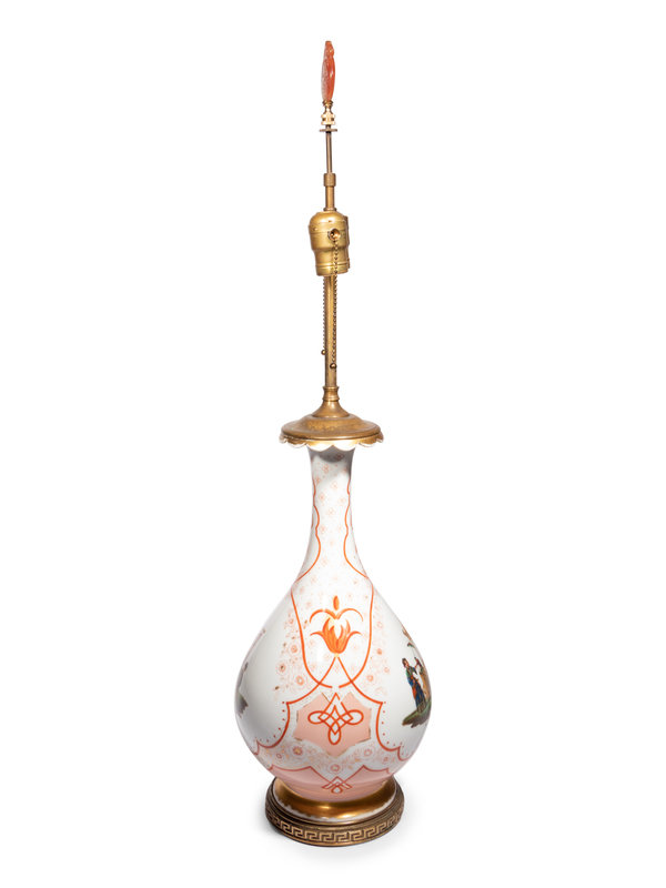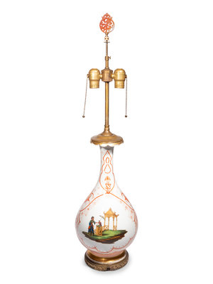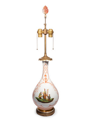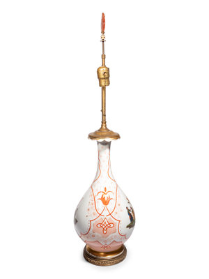 A French Painted Glass Vase Mounted as a Lamp