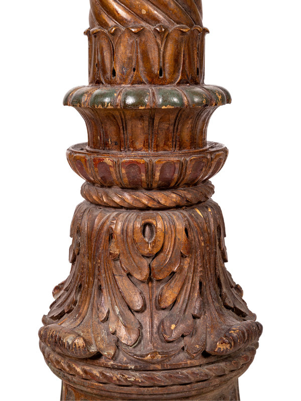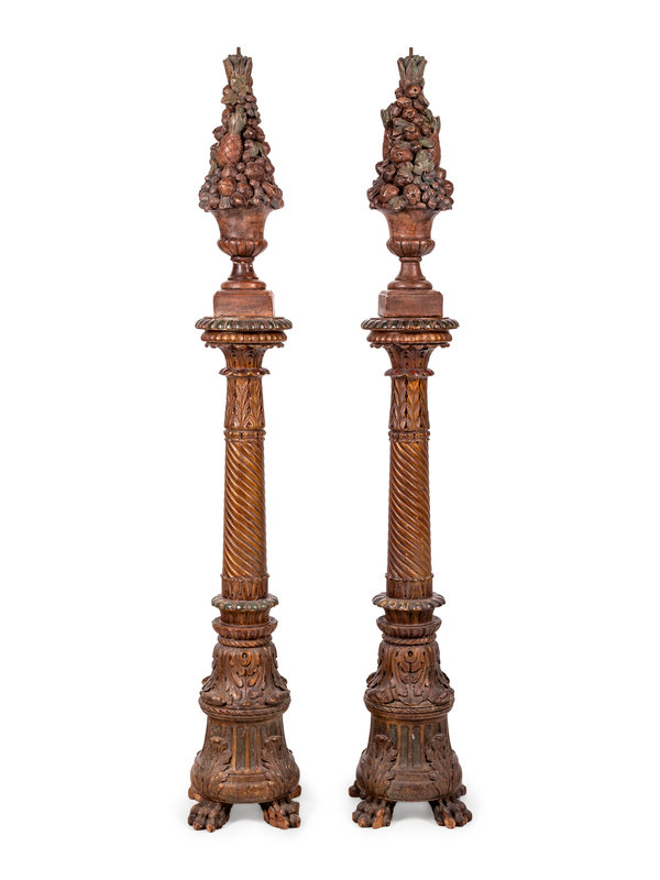 A Pair of Italian Baroque Style Painted Terra Cotta and Carved Wood Pedestals