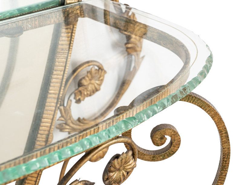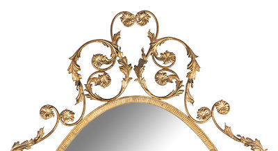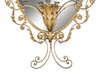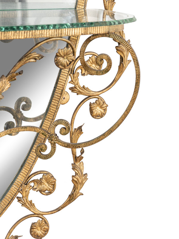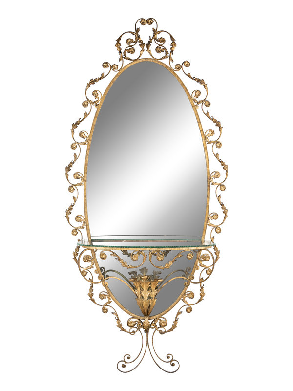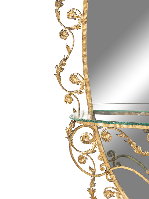 Height of mirror 91 x width 42 inches; height of console 24 x width 34 x depth 11 inches.
