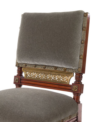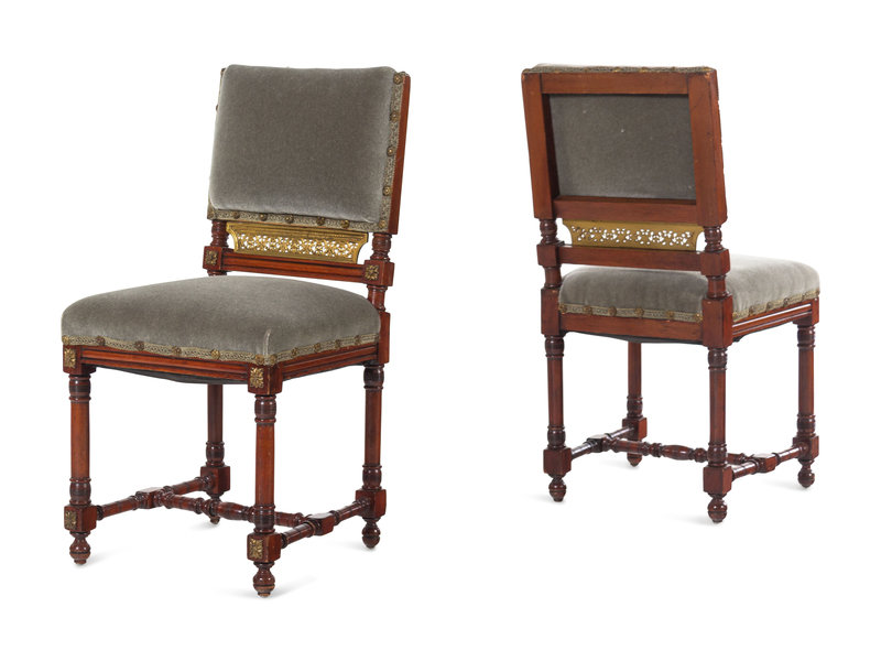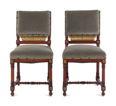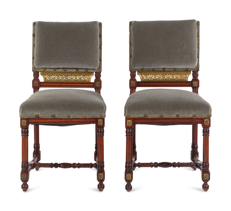 A Pair of Continental Gilt Bronze Mounted Walnut Side Chairs