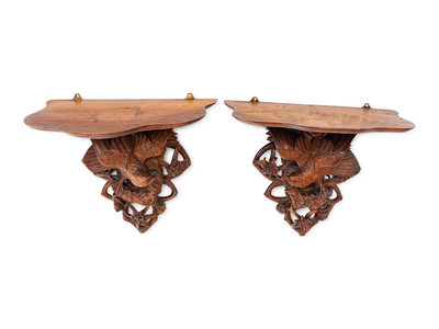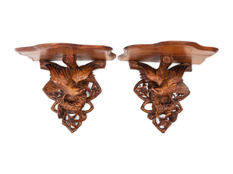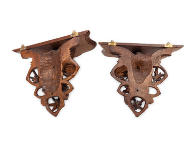 A Pair of Black Forest Style Carved Oak Wall Brackets