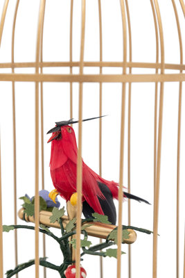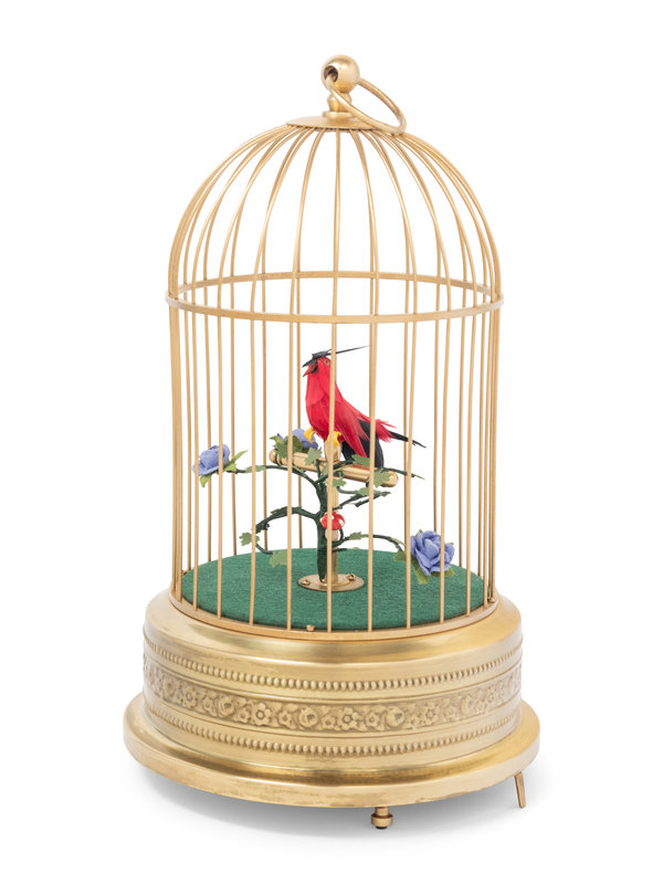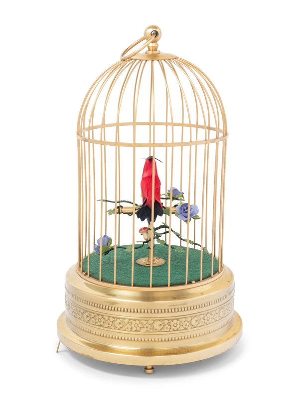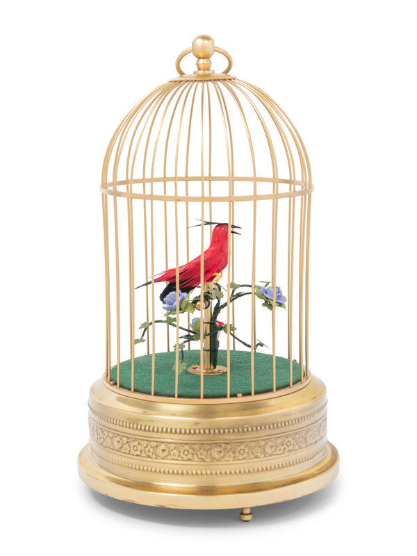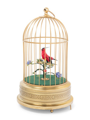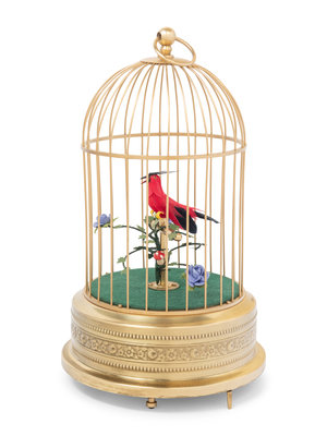 A German Gilt Metal Singing Automaton Bird Cage by Uhren Hauser