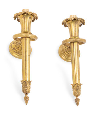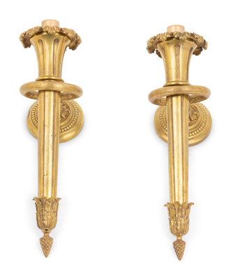 A Pair of Continental Gilt Bronze Single-Light Sconces