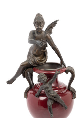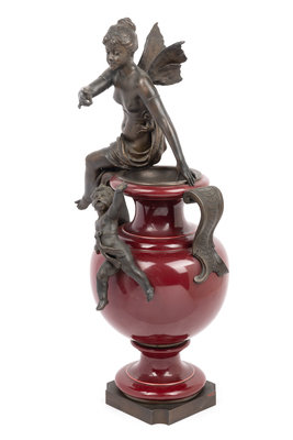A Continental Bronze Mounted Ceramic Urn