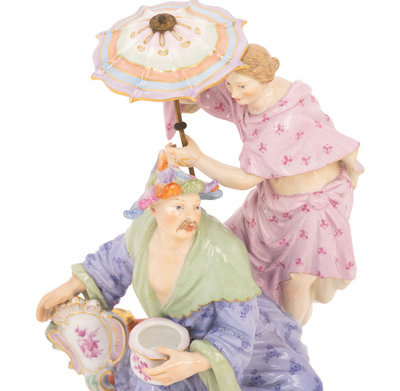 bearing crossed swords in underglaze blue, various impressed and incised numbers and an accession number to the underside.