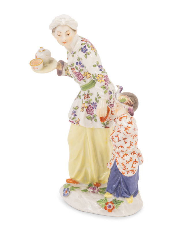 A Meissen Porcelain Chinoiserie Figure of a Lady and Child