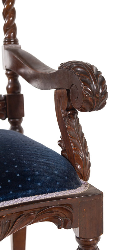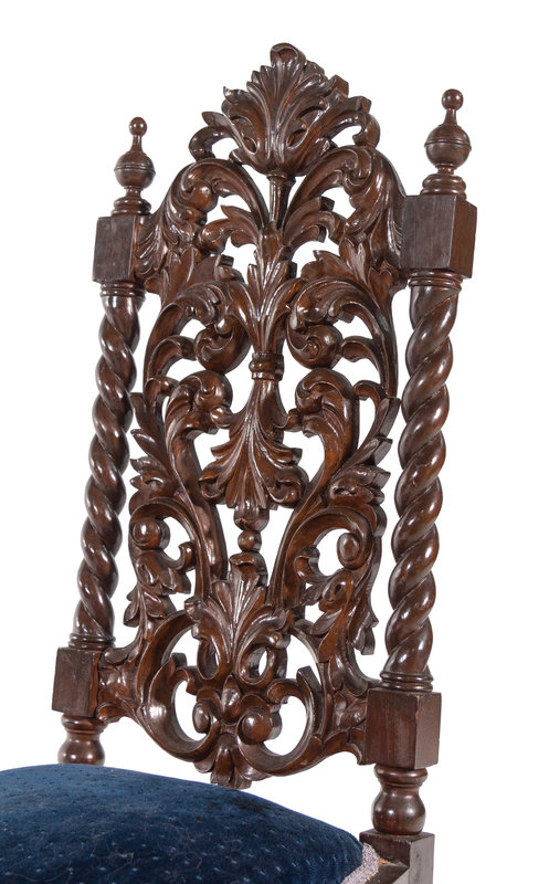 A Set of Ten Jacobean Style Carved Walnut Dining Chairs