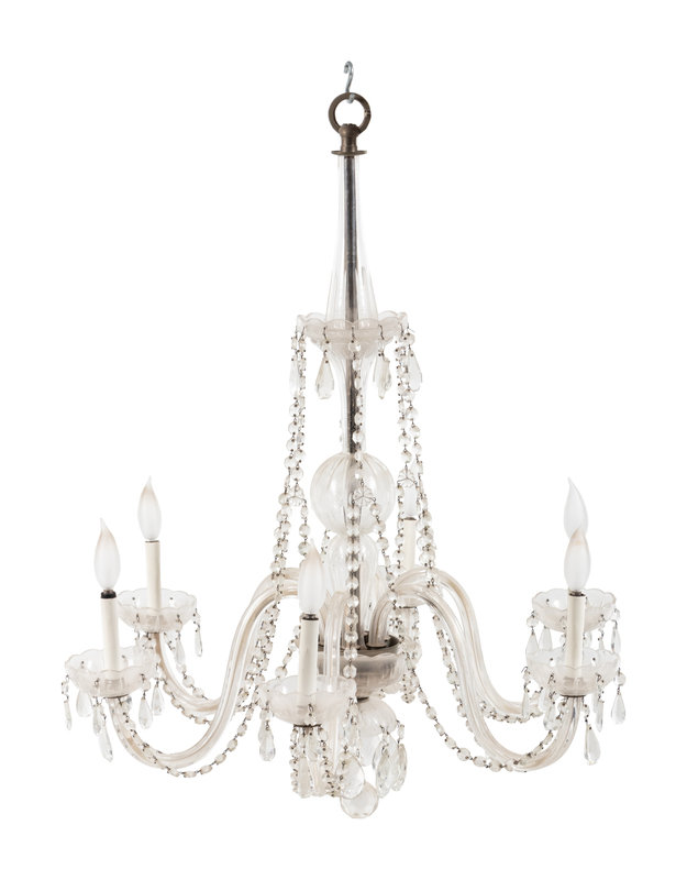 A Georgian Style Cut Glass Six-Light Chandelier