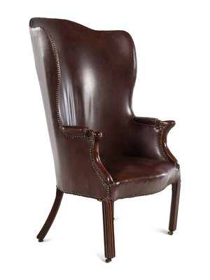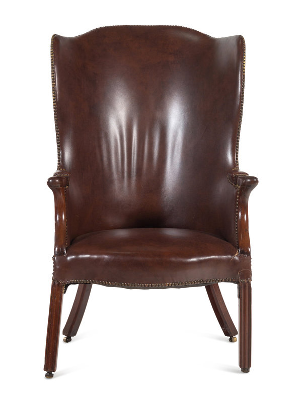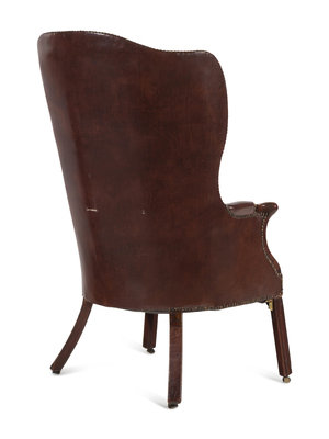 An English Leather Upholstered Mahogany Wingback Armchair