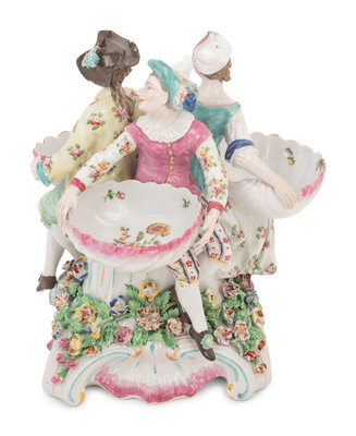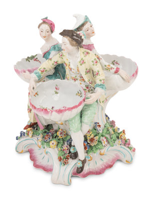 A Derby Porcelain Sweet Meat Dish Figural Group