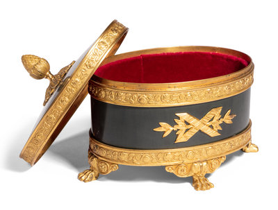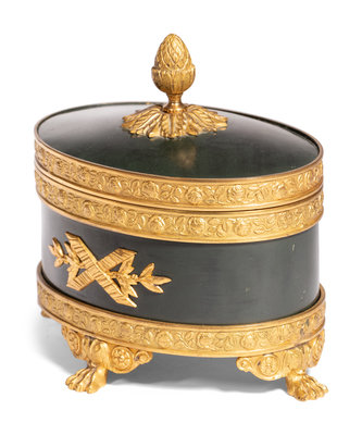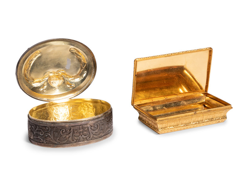 An English Silver Box, an Italian Gilt Metal Box and a Patinated Metal Table Casket