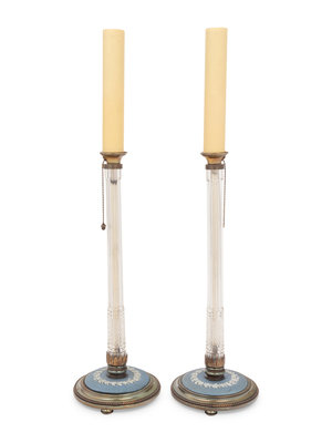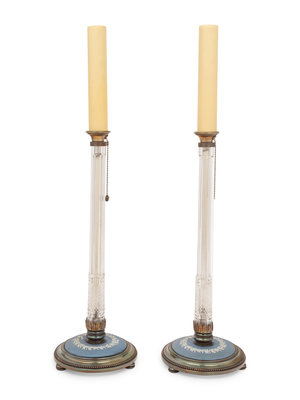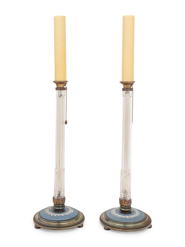 A Pair of Jasperware Mounted Cut Glass Lamps