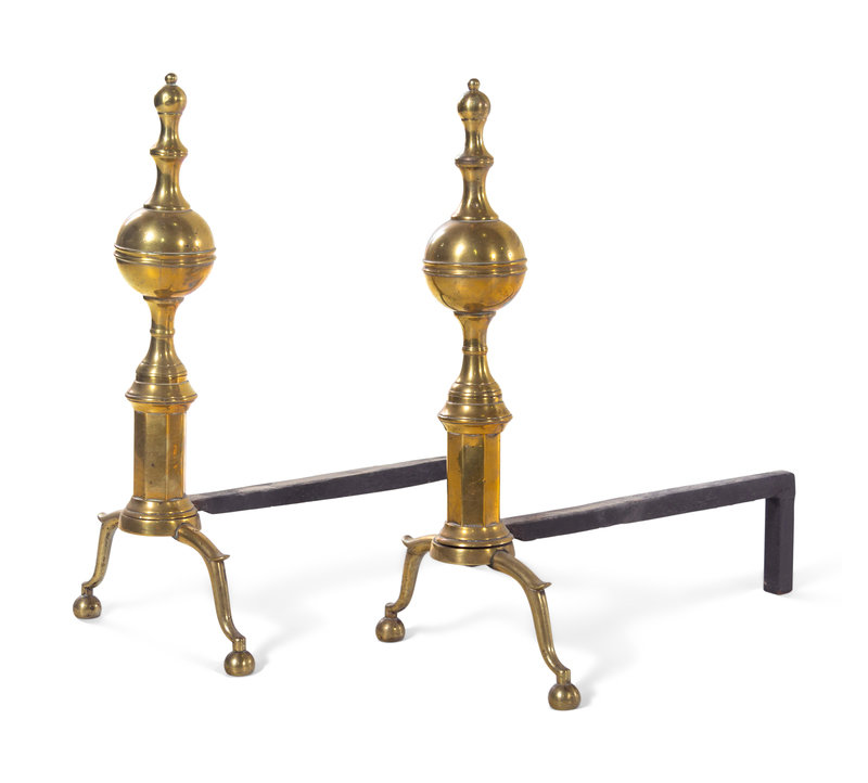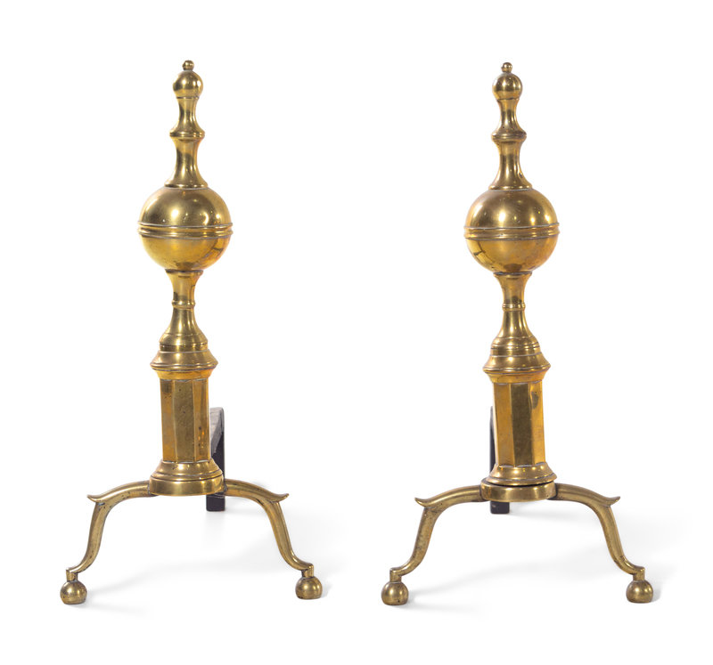 A Pair of Federal Brass Andirons