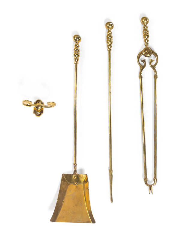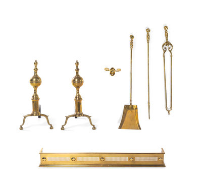 together with a modern fender and a set of fireplace tools comprising a shovel, poker and tongs.