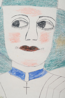 signed Lee Godie (upper left) and Godie (lower left); signed, titled, priced and inscribed (verso)