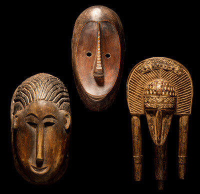 Two Bamana Wood Masks and a Janus Wood Head