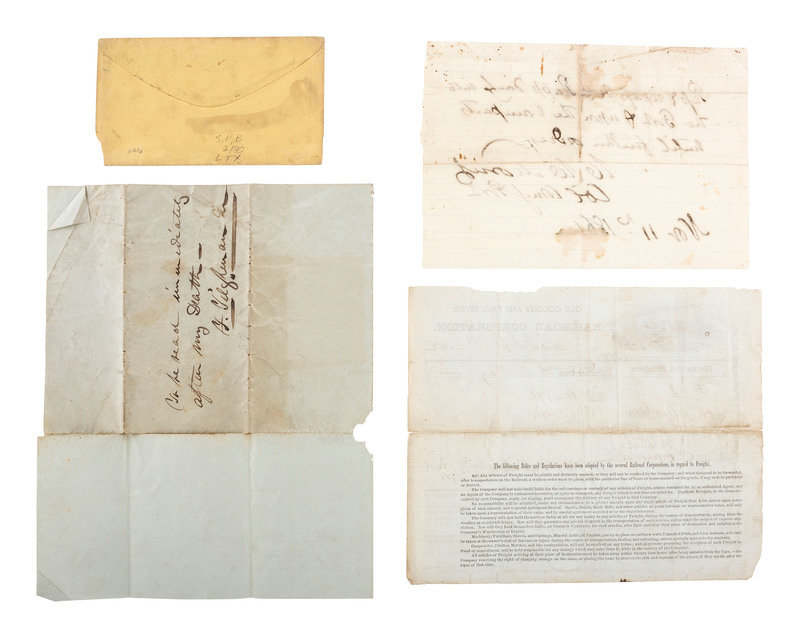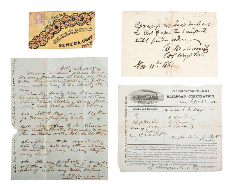 [CIVIL WAR]. Ephemera including elaborately engraved postal cover, wounded soldier's letter, railroad bill of lading for hospital stores, and more