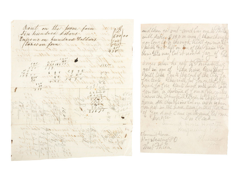 ALS, Summit House, Nov. 14, ’62. 2pp, 5 x 7-3/4 in. Mr. G.H. [illeg]? From Jos. Clark. Summit House Hospital, King Sessing P.O., West Philadelphia. Joseph is asking his father to come to his hospital “..he could get me either discharged furloughed or transferred to some New Jersy Hospital.” He gives the ticket prices, both direct and if one makes several transfers (the cheaper option).