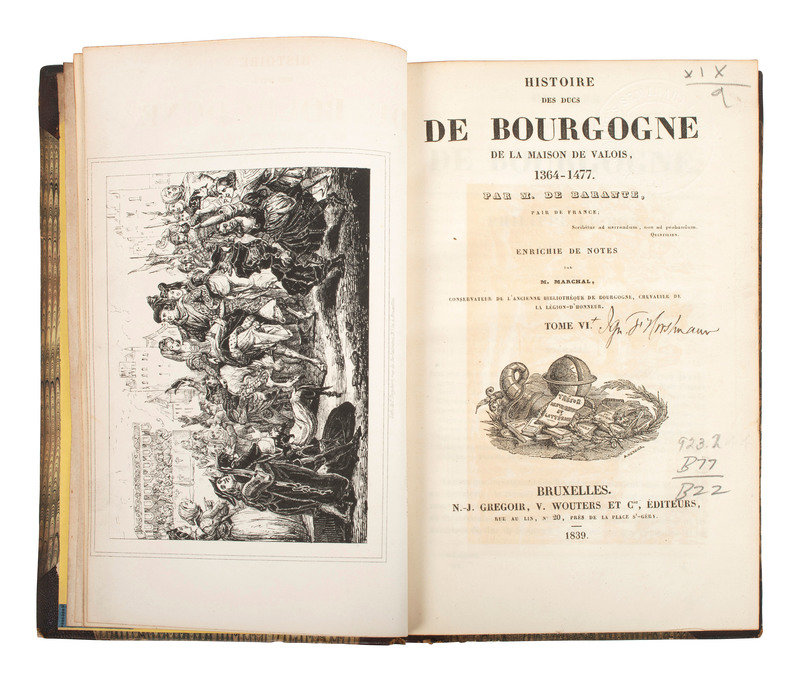 [With:] BARANTE, Amable Guillaume P.B. de (1782-1866). Histoire des Ducs de Bourgogne. Brussels: N.-J. Gregoire, V. Wouters et Cie., 1839.