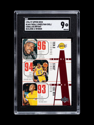 comprising 1996-97 Upper Deck Rookie Exclusives No. R10 (SGC 8 NM-MT); 1996-97 Upper Deck Rookie Exclusives No. R10P Promo (SGC Authentic); 1996-97 Upper Deck No. 58 (SGC 9 MINT); 1996-97 Upper Deck Lakers Building A Winner Team Basketball Card No. 148 (SGC 9 MINT).