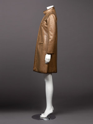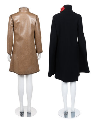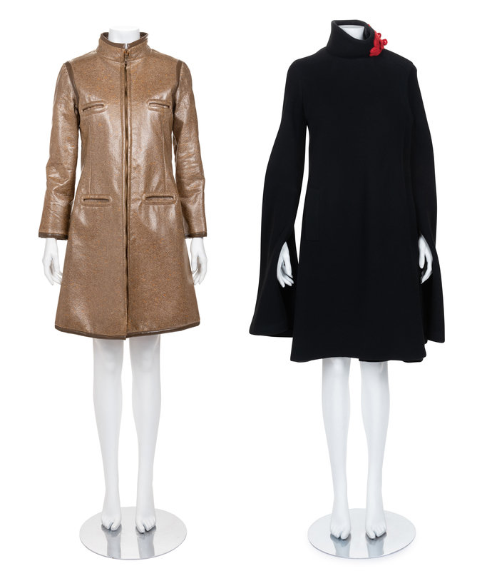 Two Pierre Cardin Coats: One Black, One Brown Vinyl Coated Tweed, 1960-70s