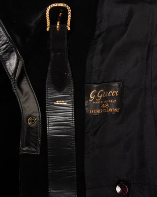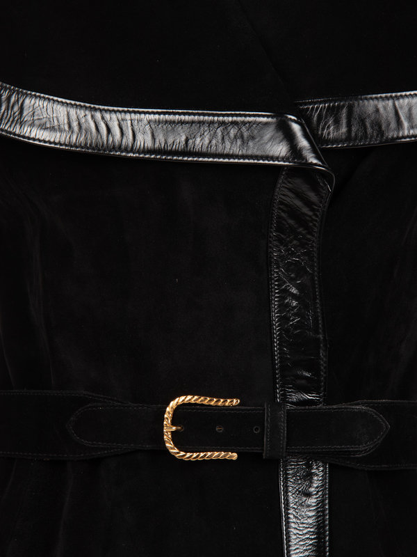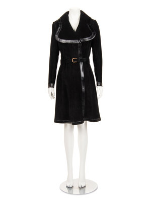 Gucci Suede and Leather Trimmed Coat with Belt, 1970s