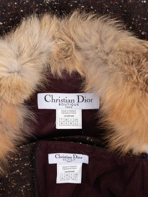 Christian Dior Tweed Skirt Ensemble with Fox Fur Collar, 1990-2000s