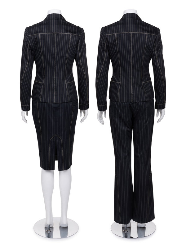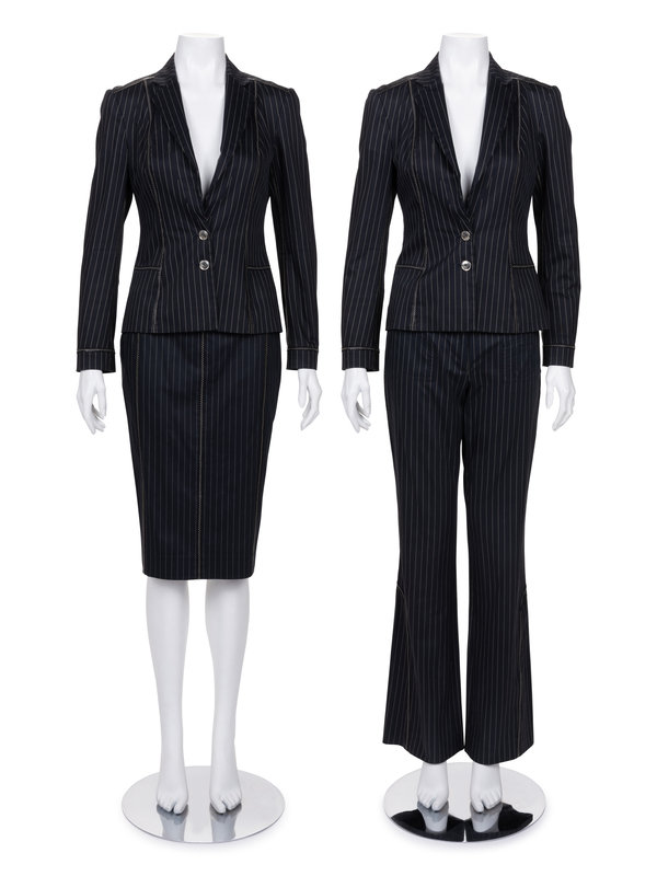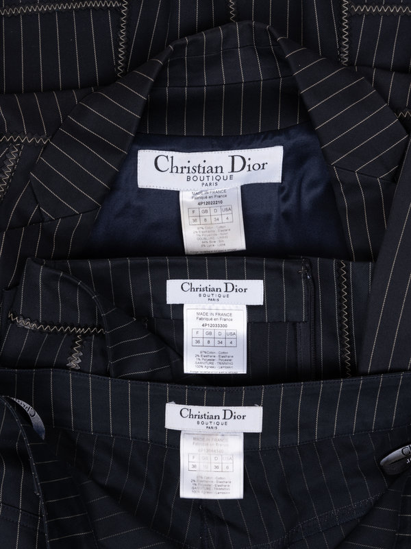 Christian Dior Pinstripe Three-Piece Set, Including Jacket, Pants, and Skirt, 1990-2000s