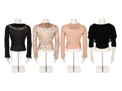 This lot includes three blouses and one cardigan.
