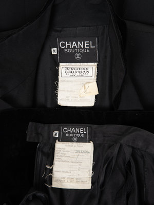 Chanel Double-Breasted Skirt Ensemble Trimmed with Velvet, 1980-90s