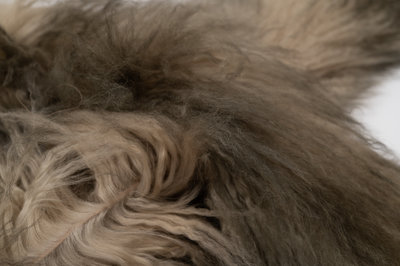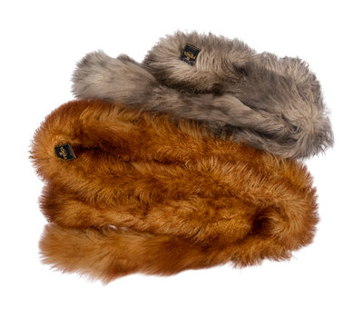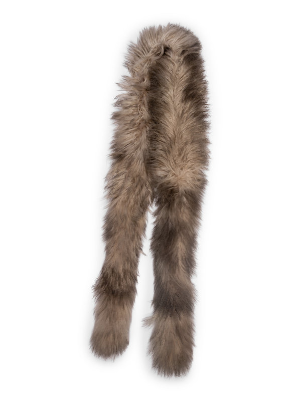 Gray and white Mongolian lamb fur stole.