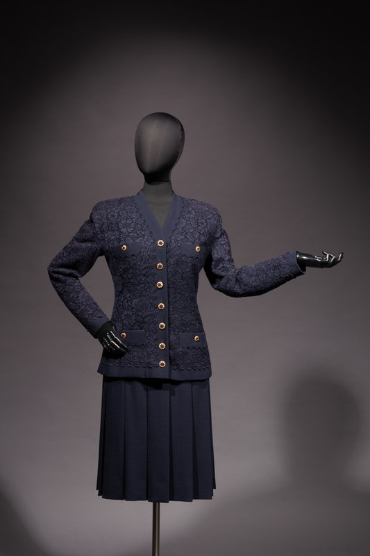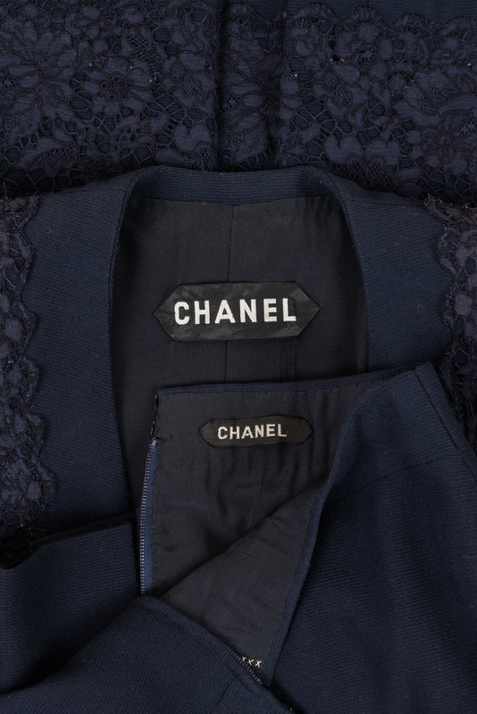Chanel Haute Couture Navy Lace Skirt Suit, Spring/Summer 1988