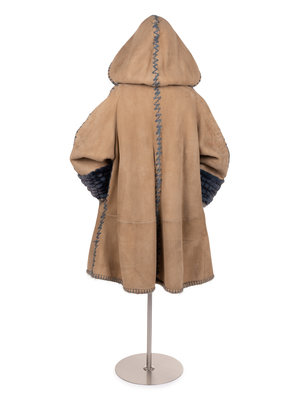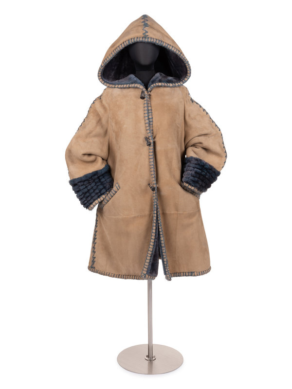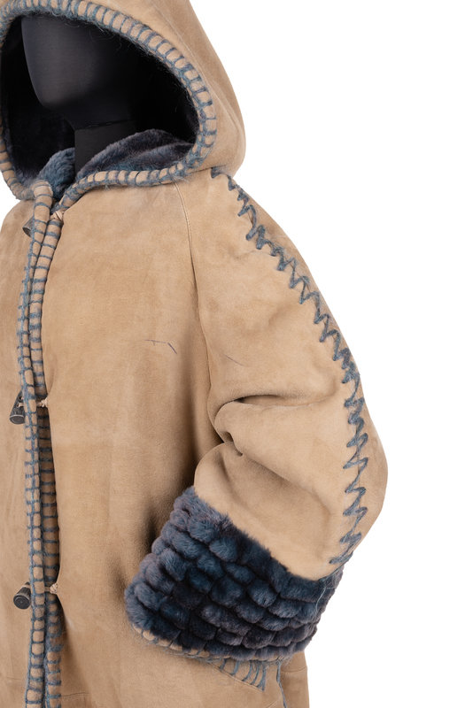 Fendi Suede Hooded Coat Lined in Blue Shearling, c. 1993