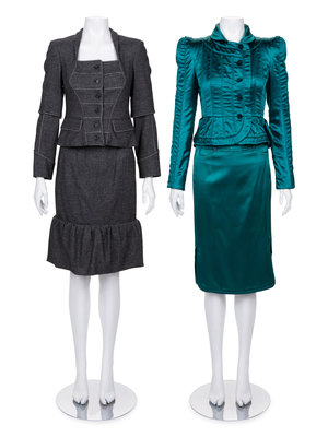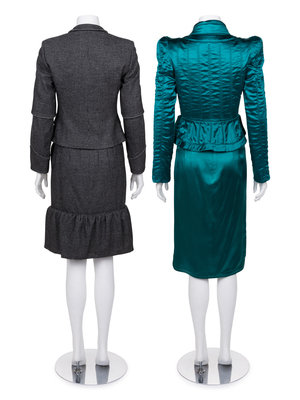 This lot includes two two-piece skirt suits.