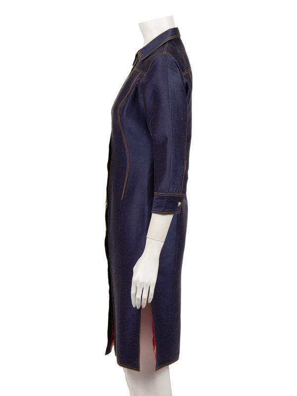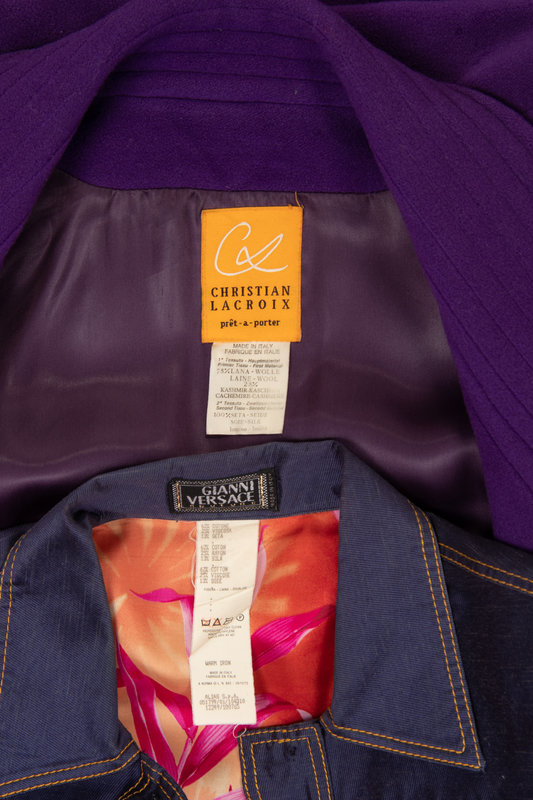 Two Designer Pieces: One Christian Lacroix Coat and One Versace Denim Shirt Dress, 1990-2000s