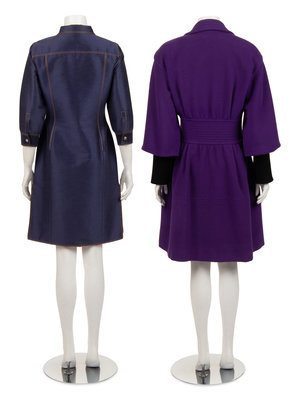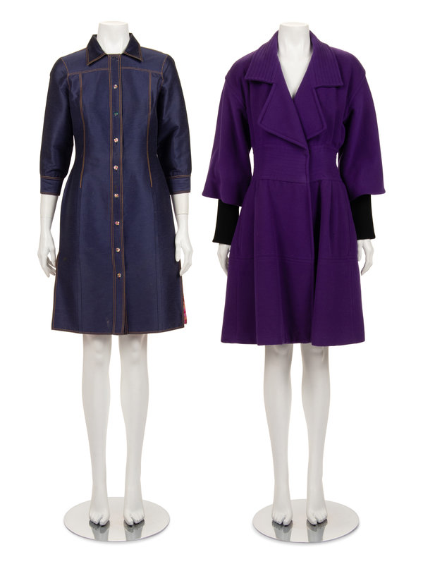 This lot includes one coat and one shirt dress.