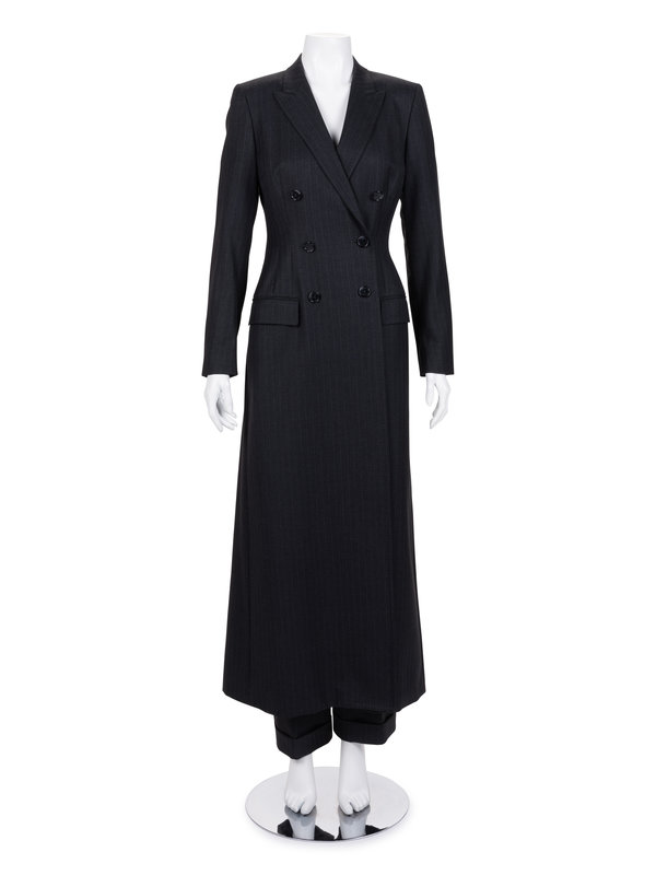 Dolce & Gabbana Pinstripe Long Coat and Pants Ensemble, 1990-2000s