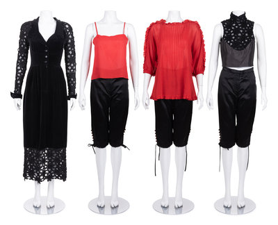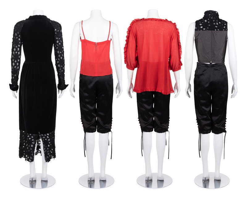This lot includes a two-piece dress and a three-piece pant ensemble.
