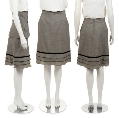 This lot includes two ensembles: one coat and one two-piece skirt ensemble.