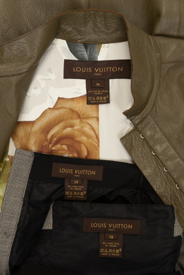 Three Louis Vuitton Pieces: One Leather Coat and One Two-Piece Skirt Ensemble, 2000-10s