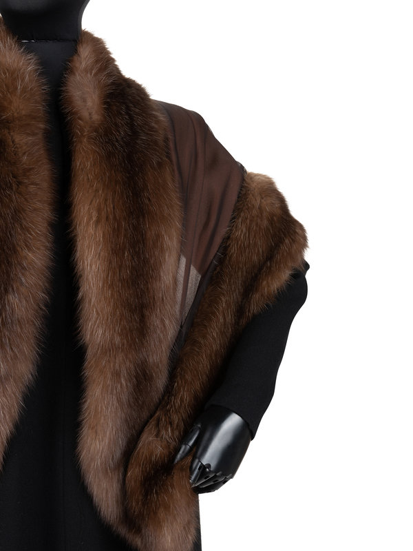 Brown silk chiffon wrap trimmed with brown sable fur.