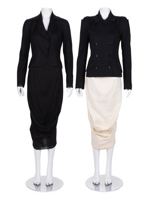 Four John Galliano Pieces: One Two-piece Skirt Suit, One Jacket, and One Skirt, 1990-2000s