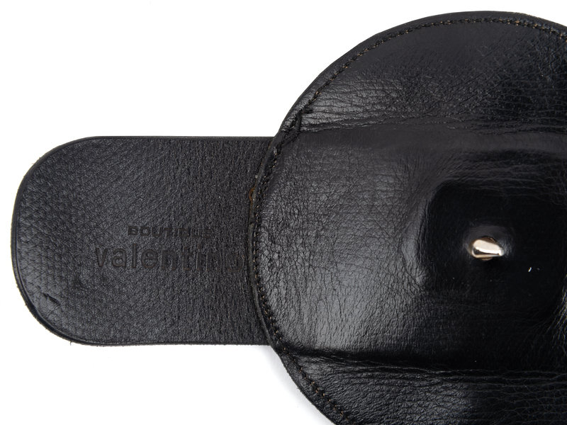 Black calf hair belt with leather and silver-tone D-ring buckles.